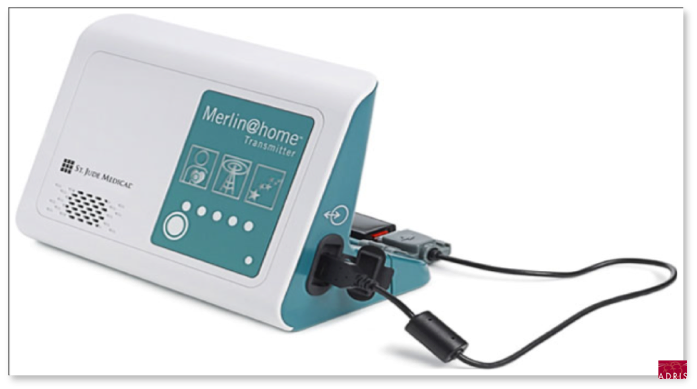 Désormais, il est possible pour le médecin de le surveiller à distance, à l'aide de ce boiter Merlin@home Trabsmitter que vous allez brancher à votre domicile.