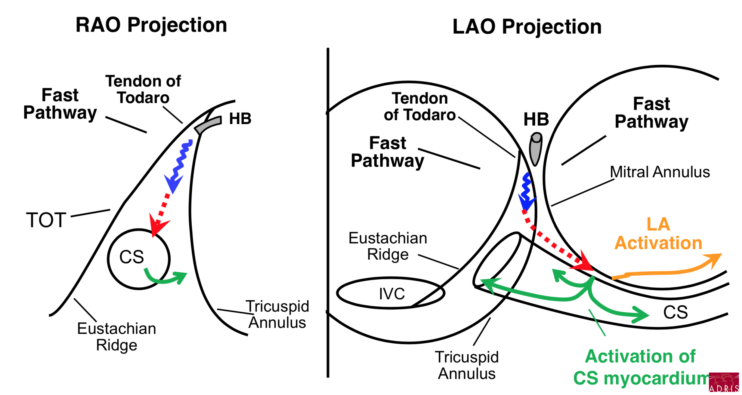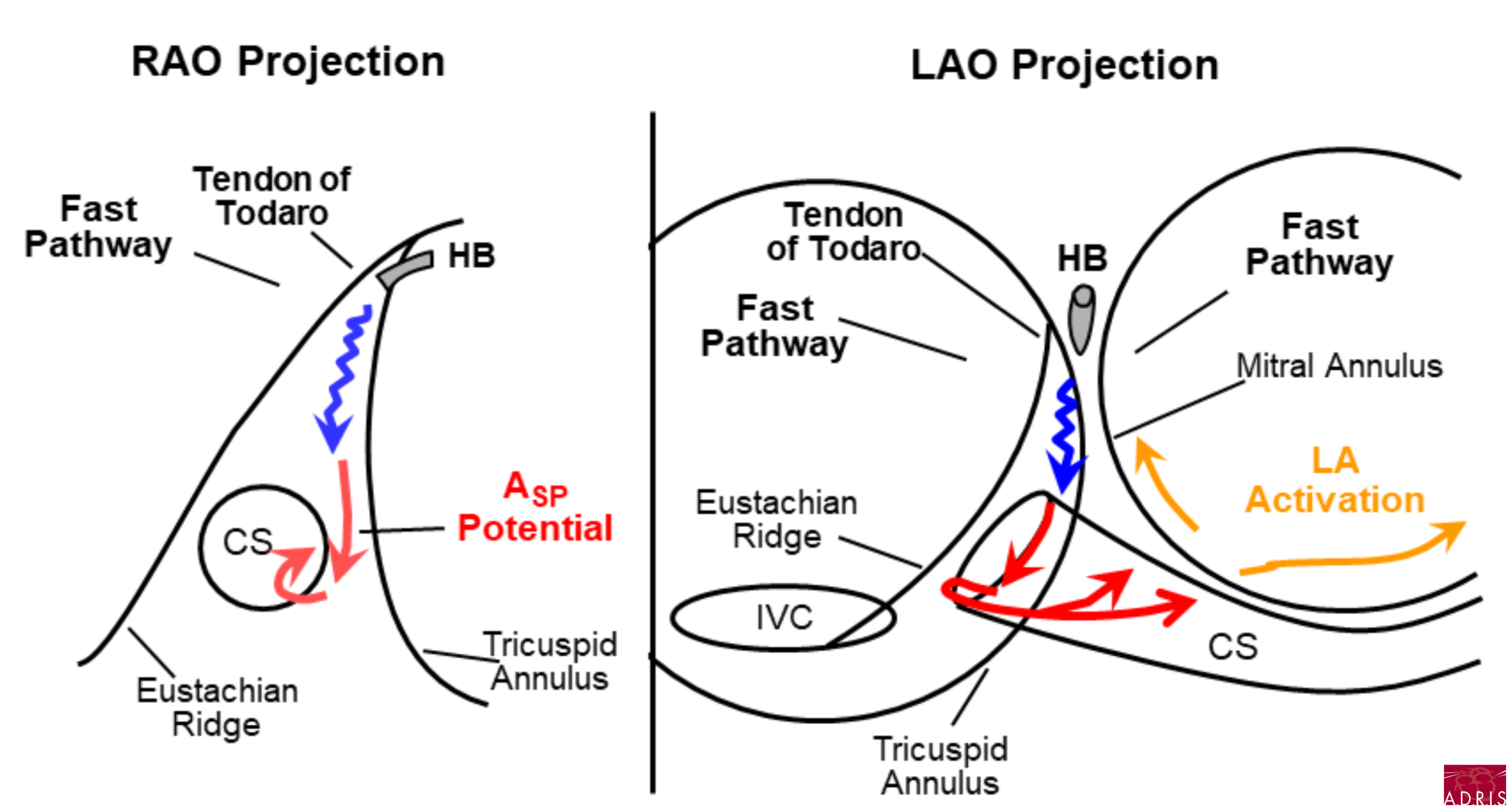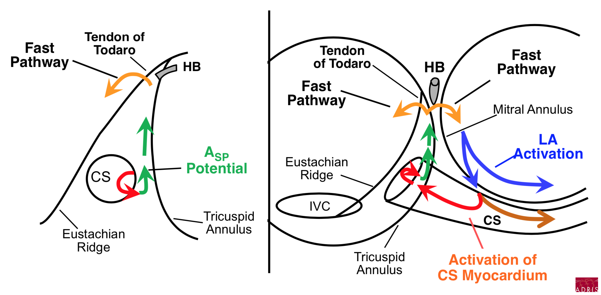 - comment derrière le tendon Todaro (voie rapide), remonter (voie antéroseptale)