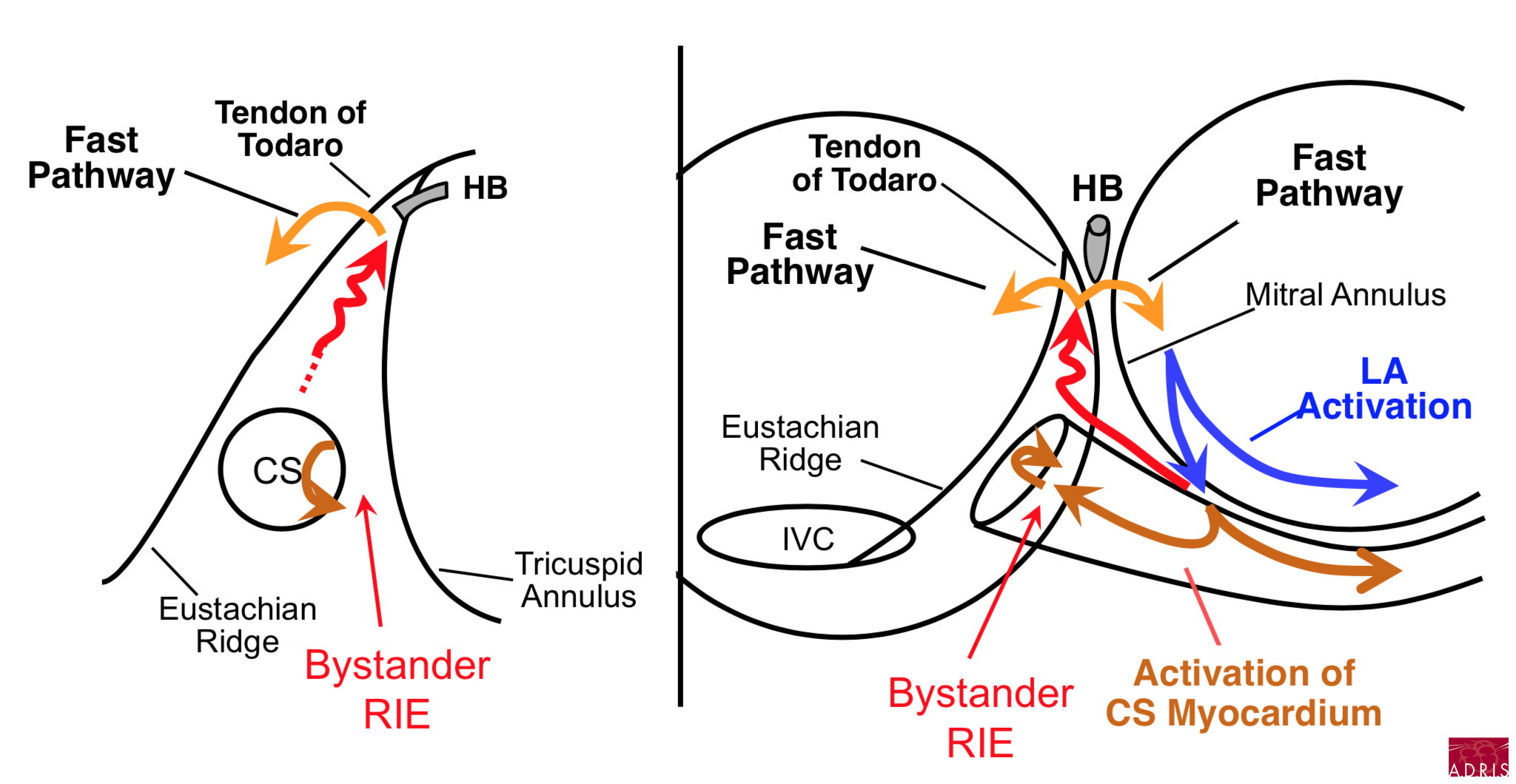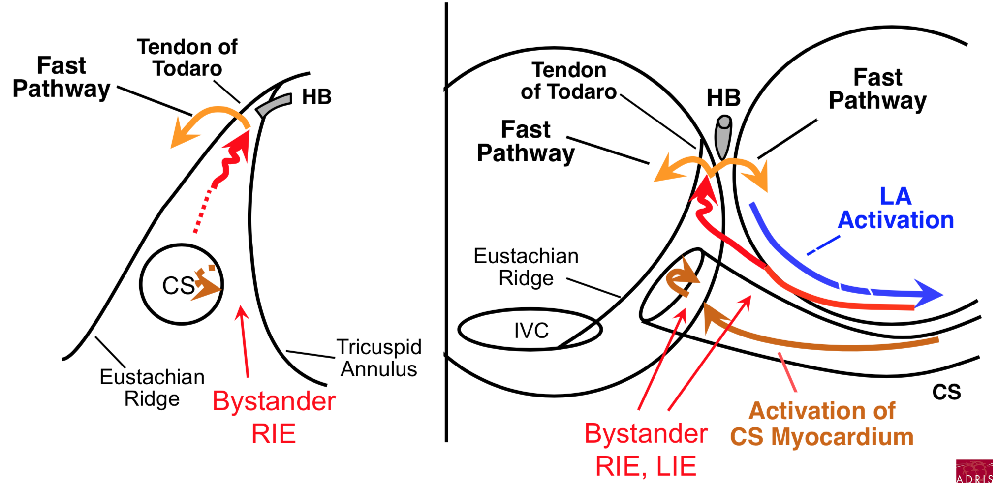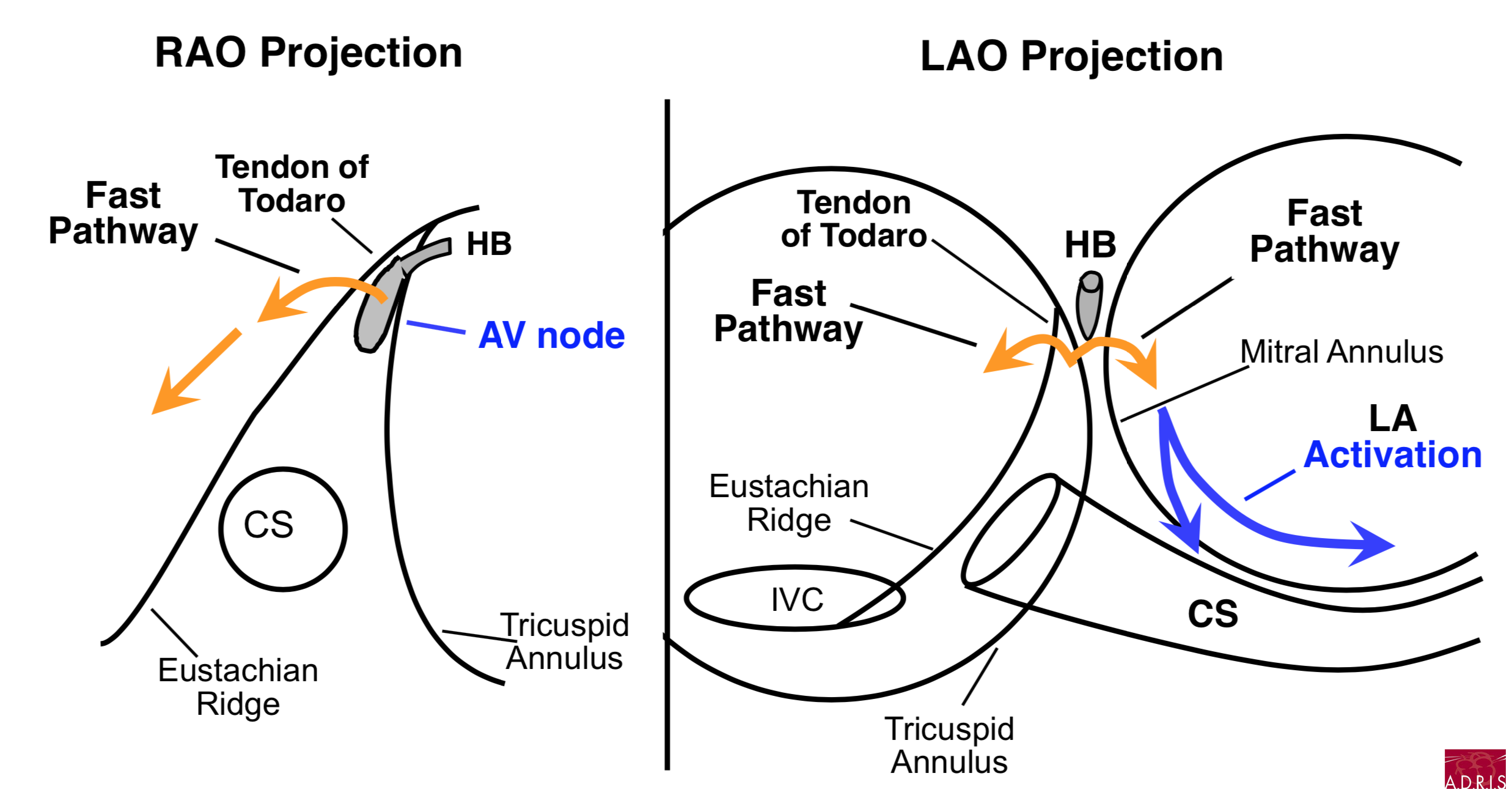 - comment derrière le tendon Todaro (voie rapide), remonter (voie antéroseptale)
