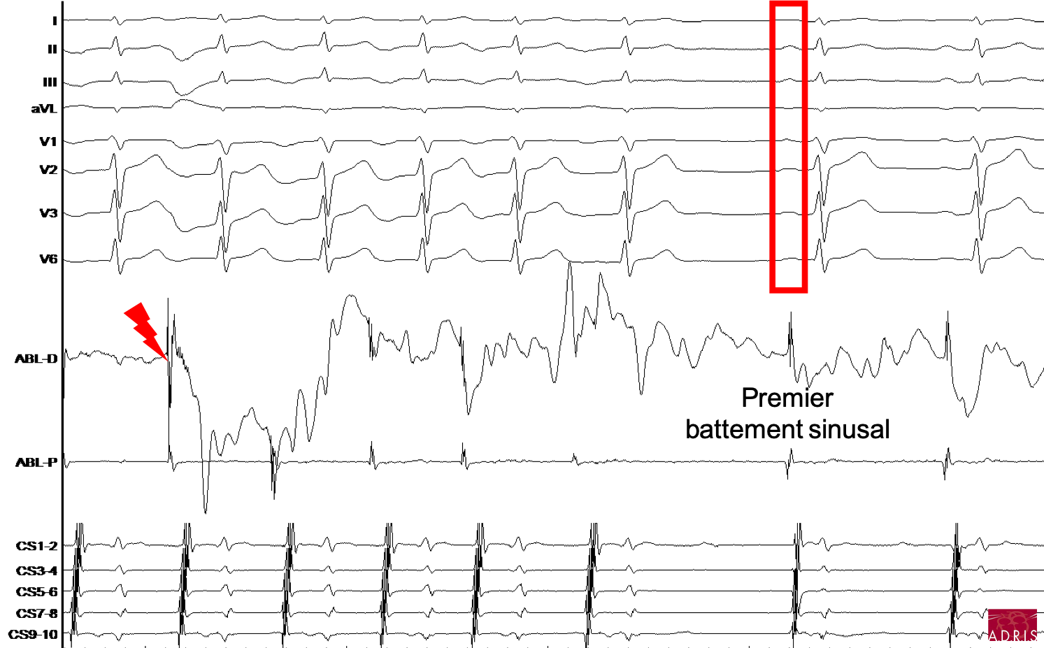 Tachycardie atriale focale à 120/mn de la face antérieure de l'oreillette gauche (confirmé par système de cartographie 3D).