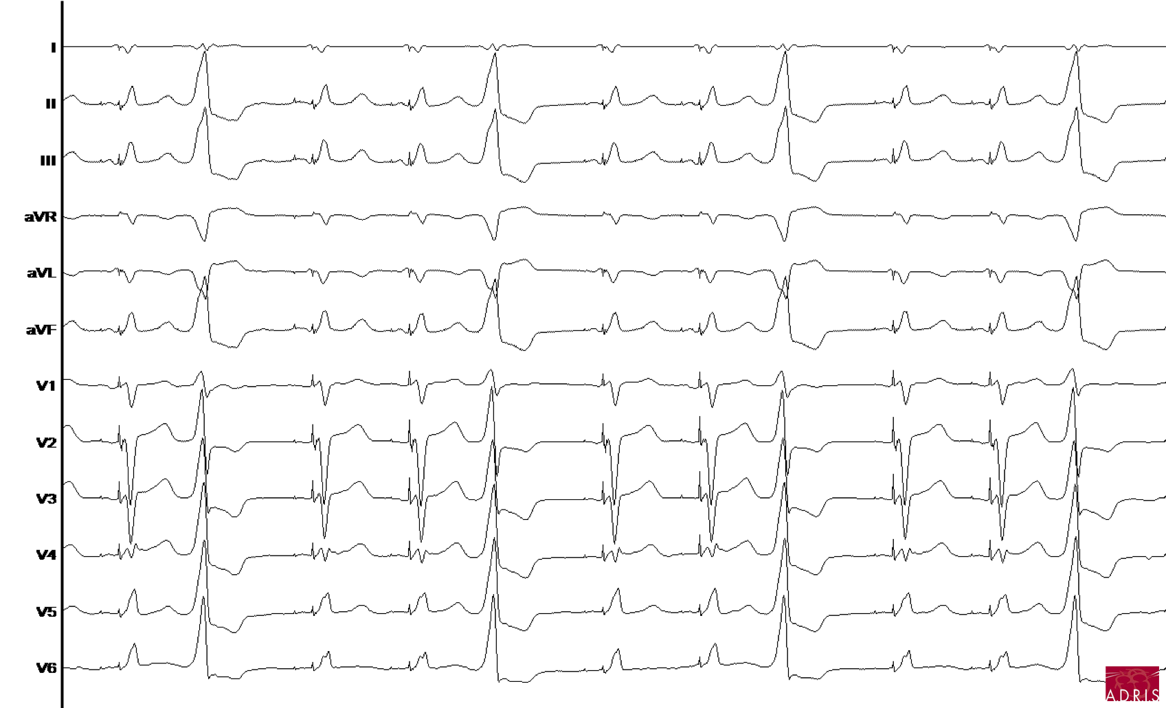 - QRS larges, prématuré par rapport à l'intervalle RR normal et non précédé d'une onde P (sauf si tombe par hasard devant une onde P mais PR raccourci)