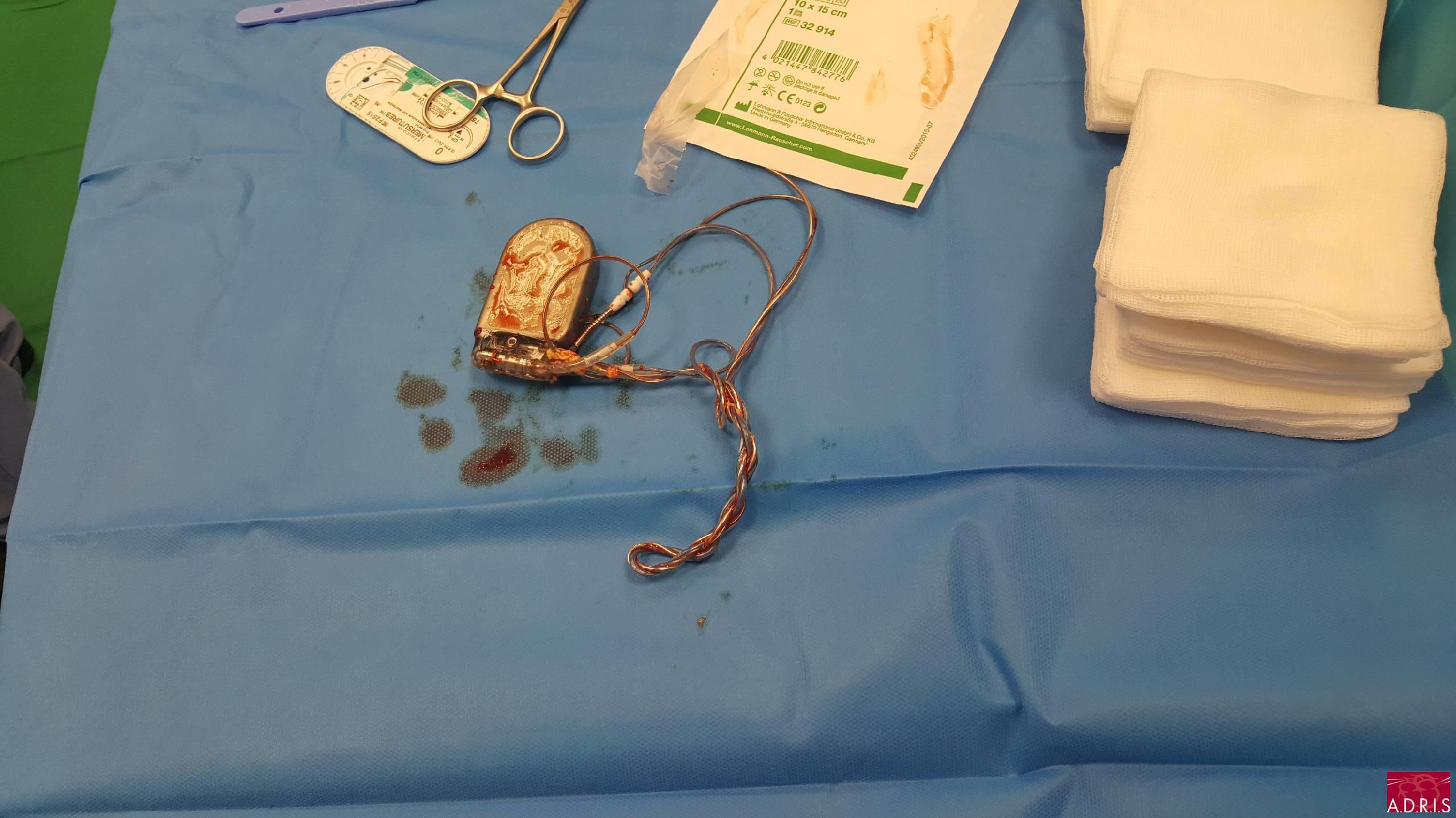 Matériel extrait (notez la tresse formée par les 3 sondes typique de ce syndrome)