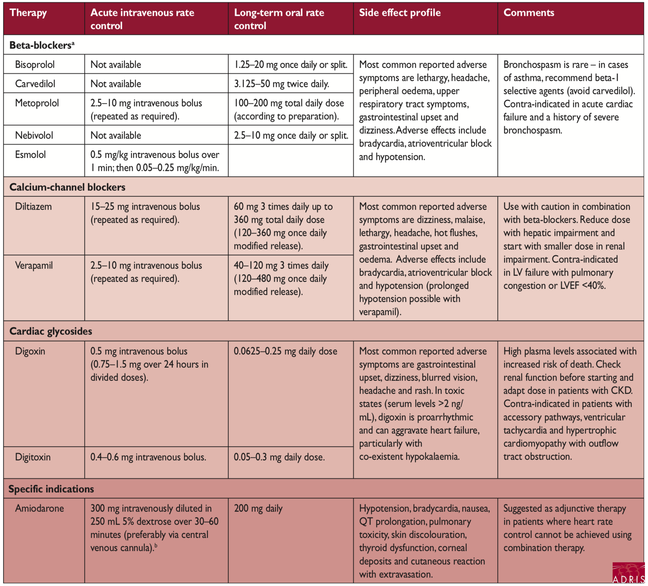 - inhibiteur calcique bradycardisant ou bétabloquant +/- digoxine